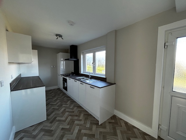 Description: Window Formation to Rear of Property, Lino Floor Covering, Ceiling Light and Power Points, Selection of Wall and Floor Mounted Units, Integrated Electric Oven and Gas Hob, Plumbed for Dish washer,