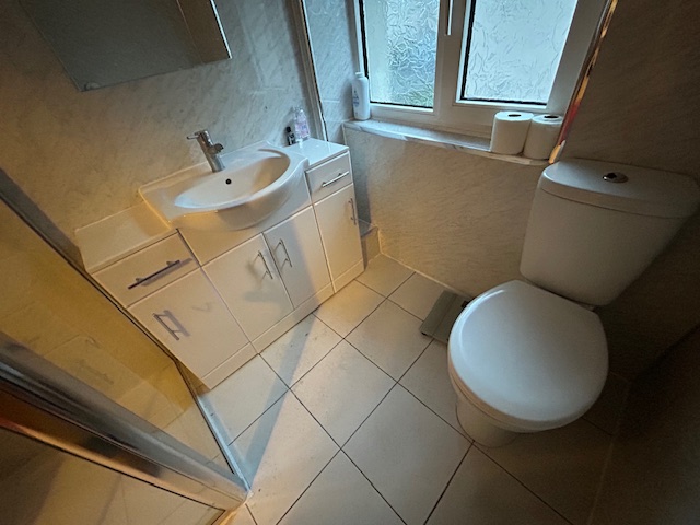 Description: Window Formation to Side of Property. Featuring three piece Suite, comprising of Vanity Unit and WC, Shower Cubicle with Shower. Fully wet wall panels, Tiled Floor Covering. Wall Mounted Towel Radiator.