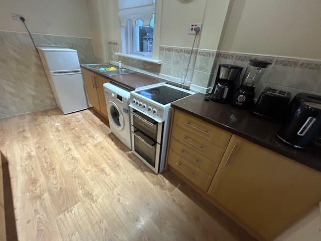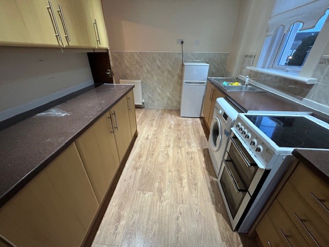 Description: Windows Formation to Side and Front of Property. Selection of Wall Mounted and Floor Standing Units. Contrasting Worktop and Splashback. Free standing Electric Cooker, Sink and Drainer Unit with Mixer Tap. Spot Lights and Power Points. Wall Mounted Radiator,