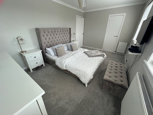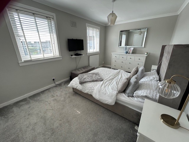 Description: Windows Formation with Wooden Venetian Blinds to Front of Property, Ceiling Light and Power Points. Carpet Floor Covering, Storage Cupboard, Wall Mounted Radiator