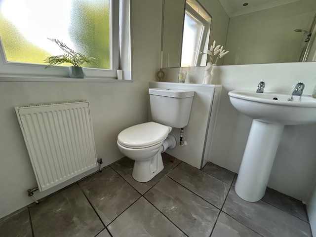 Description: Featuring Three Piece Suite comprising of WC, Wash Hand Basin, Electric Shower and Screen over Bath, Spot Light, Fully Tiled Wall and Floor Covering, Wall Mounted Radiator.