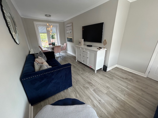 Description: Entering property through External Door into a welcoming Home, Laminate Flooring, Ceiling Lights, Wall mounted Radiator, access to Lounge, Kitchen, 2 Double Bedrooms and Bathroom,