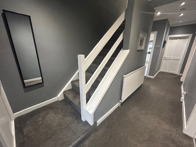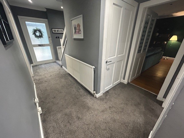 Description:  Feature External Glazed Door, Carpet Floor Covering, Ceiling Light, Wall Mounted Radiator, provides access to Lounge/ Dining, Kitchen, Downstairs Family Bathroom, 3 Downstairs Bedrooms and Stairway to Upper Level,
