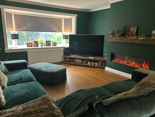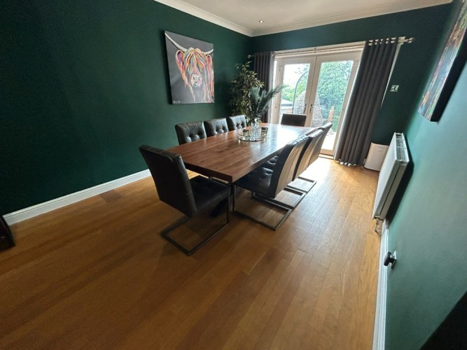 Description: Bay Window with Roller Blinds to front and French Doors Formation to Rear of Property which provides access to Rear Decking area, Spacious Lounge Features Wall Mounted Electric Fire, Spot lights and Power Points, Wooden Floor Covering, Wall Mounted Radiator,