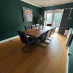 Description: French Doors Formation leads onto Decking area, ample space for Dining Wooden Floor Covering, Spot Lights and Power Points, Wall Mounted Radiator,
