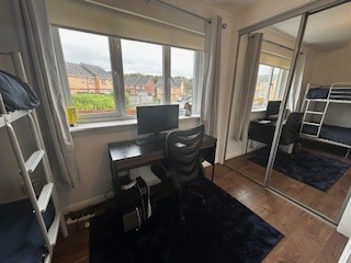 Description: Window Formation to Rear of Property, Fitted Mirrored Sliding Wardrobe Doors, Ceiling Light and Power Points. Carpet Floor Covering, Storage Cupboard, Wall Mounted Radiator