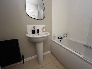 Description: Featuring Three Piece Suite comprising of WC, Wash Hand Basin, Shower and Screen over Bath, Ceiling Light, Tiled Flooring and partially Tiled Wall and Covering, Storage Cupboard, Wall Mounted Radiator.