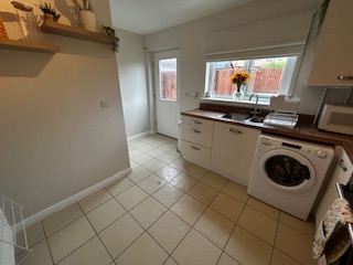 Description: Window Formation to Rear of Property, Kitchen comprises of Wall Units with Contrasting Worktop and Tiled Splashback. Sink and Drainer Unit with Mixer Tap. Integrated Electric Oven and Hob, Plumbed for Washing Machine, Ceiling Light and Power Points, Tiled Floor Covering, Wall Mounted Radiator