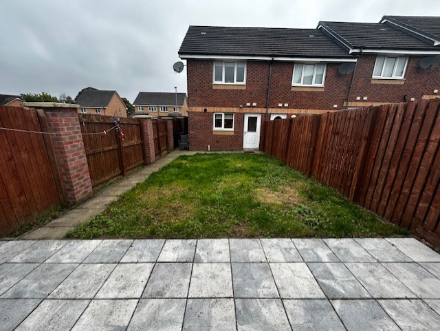REAR: ENCLOSED LAID TO LAWN, PAVED PATIO AREA,