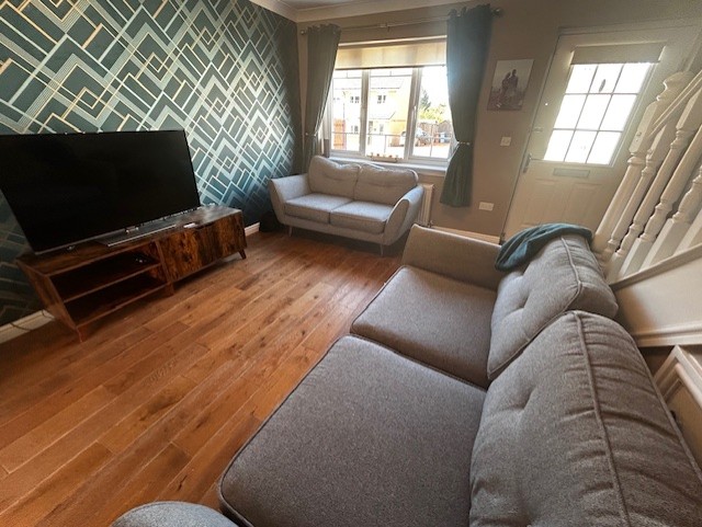 Description: Window Formation with Roller Blinds to Front of Property, Ceiling Light and Power Points, Wooden Floor Covering, Power Points and Ceiling Light, Wall Mounted Radiator, access to Kitchen and WC